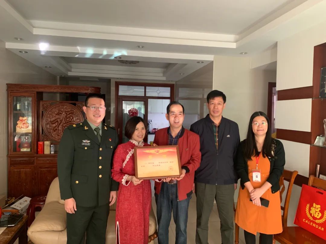 為黃權東家庭送上掛歷并懸掛光榮牌
