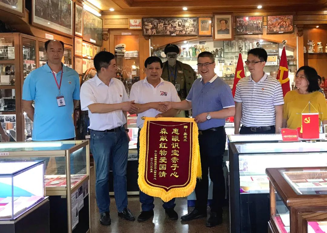 ▲黃圃鎮(zhèn)退役軍人服務(wù)中心向吳惠森贈(zèng)送錦旗 座談會(huì)結(jié)束后,與會(huì)人員參觀了吳惠森“家庭軍事博物館”,開展“老兵永遠(yuǎn)跟黨走·重溫紅色故事”主題黨日活動(dòng),感悟當(dāng)今生活來(lái)之不易,銘記歷史、勿忘國(guó)恥,引導(dǎo)廣大退役軍人增強(qiáng)聽黨話、跟黨走的行動(dòng)自覺,充分營(yíng)造軍愛民,民擁軍,軍民魚水一家親的良好社會(huì)氛圍,提升黃圃鎮(zhèn)退役軍人工作服務(wù)水平,以良好的工作成效慶祝中國(guó)共產(chǎn)黨成立100周年。