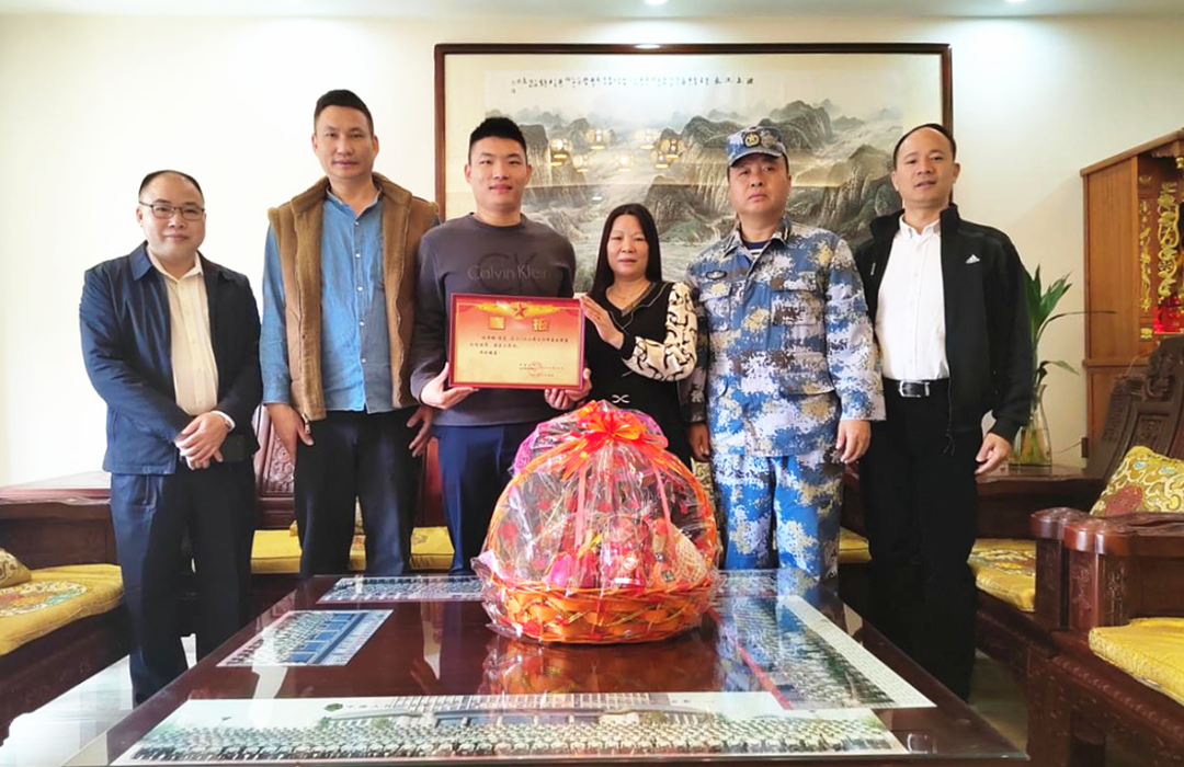 近日,港口鎮(zhèn)武裝部聯(lián)合港口鎮(zhèn)退役軍人服務(wù)中心,前往看望慰問榮立三等功的現(xiàn)役軍人林澤鵬及其父母,送去立功喜報(bào)。