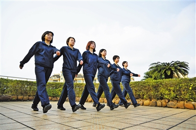 應征女青年在進行操練。記者 易承樂 攝