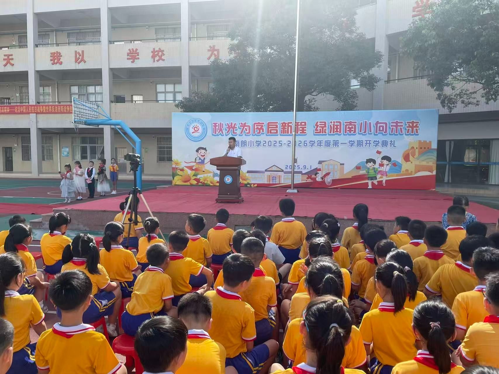 9月1日,中山南朗街道南朗小學(xué)舉行秋季學(xué)期開學(xué)典禮。開學(xué)典禮以紀(jì)念中國人民抗日戰(zhàn)爭暨世界反法西斯戰(zhàn)爭勝利80周年為主題,把愛國主義教育作為新學(xué)期的“開學(xué)第一課”,帶領(lǐng)同學(xué)們回望烽火歲月,弘揚偉大抗戰(zhàn)精神。 南朗街道南朗小學(xué)黨支部書記、校長杜少君為同學(xué)們講述了可歌可泣的抗戰(zhàn)故事。簡文祥 攝開學(xué)典禮上,南朗街道南朗小學(xué)黨支部書記、校長杜少君以《銘記偉大勝利,傳承抗戰(zhàn)精神——紀(jì)念中國人民抗日戰(zhàn)爭暨世界反法西斯戰(zhàn)爭勝利80周年》為題,講述了可歌可泣的抗戰(zhàn)故事,為全體師生上了一堂生動的思政第一課。 92歲的老校長程民興受邀來到學(xué)校,他以親歷者的身份為同學(xué)們講述校園經(jīng)歷的抗戰(zhàn)故事。簡文祥 攝南朗小學(xué)的前身是安定學(xué)校,也是1943年南朗安定戰(zhàn)斗的核心遺址?;顒赢?dāng)日,92歲的老校長程民興受邀來到學(xué)校,他以親歷者的身份為同學(xué)們講述校園經(jīng)歷的抗戰(zhàn)故事,讓過去的歷史多了份可觸的溫度。“日本飛機轟炸安定學(xué)校時,瓦片碎裂的聲響至今仍在耳畔回響,那次轟炸,我險些沒能活下來。”他告訴同學(xué)們,日寇占據(jù)安定學(xué)校后,把兩層教學(xué)樓改造成堡壘,墻外布滿帶刺的鐵絲網(wǎng),槍口日夜對著村口;那時他就躲在閣樓里,親眼看見二樓窗口常年架著機槍,夜里探照燈掃過田野時,全村人都屏息凝神,不敢發(fā)出半點聲響。 如今,程民興的兒女們在國外生活,孩子們想要接他出國,但他卻執(zhí)意留在國內(nèi)。他告訴同學(xué)們:“你們看,咱們現(xiàn)在的日子多好啊——吃的、用的樣樣齊全,出門不管是坐車還是騎車,去哪兒都特別方便;再瞧瞧你們的校園,環(huán)境優(yōu)美,設(shè)備先進(jìn)。同學(xué)們一定要珍惜這么好的學(xué)習(xí)環(huán)境,認(rèn)真讀書,增長本領(lǐng),祖國的建設(shè)以后就要靠你們了?!?/p> 杜少君帶領(lǐng)孩子們到南朗小學(xué)操場保留的帶彈孔的殘墻,講述抗戰(zhàn)往事。簡文祥 攝 活動最后,杜少君特意帶領(lǐng)孩子們到南朗小學(xué)操場保留的帶彈孔的殘墻,觸摸那些深淺不一的彈痕。他指向殘墻旁生長的綠植說道:“這片曾被戰(zhàn)火灼燒的土地,如今已長出繁榮的新綠。烈士們用生命守護(hù)的家園,正在一代代人的手中變得更好。”觸摸彈痕的那一刻,同學(xué)們仿佛在與歷史對話:傳承偉大抗戰(zhàn)精神,不是一句口號,而是要接過前輩的接力棒,在新時代為家鄉(xiāng)、為祖國奮斗。 校園操場、紅色地標(biāo)、親歷者、戰(zhàn)斗遺址串聯(lián)起一堂行走的思政課。杜少君說:“讓孩子們在歷史現(xiàn)場觸摸過去,才能真正理解‘銘記’的意義。偉大抗戰(zhàn)精神的傳承,就藏在每一次駐足、每一次傾聽、每一次思考里?!?/p> 通訊員:于銳 簡文祥 ◆編輯:吳玉珍◆二審:鄭沛鋒◆三審:周亞平 文盾校對——用科技,守文字 |