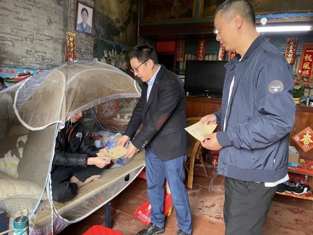 ▲沙溪鎮(zhèn)副鎮(zhèn)長陳嘉毅帶隊到涌頭村、康樂村走訪慰問