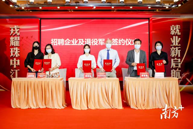 企業(yè)與退役軍人代表進行現(xiàn)場簽約。 招聘活動開展以來成效明顯,在啟動儀式現(xiàn)場,中山愛爾眼科醫(yī)院、廣東微觀科技有限公司、廣東凱世達農(nóng)業(yè)科技有限公司三家企業(yè)代表與就業(yè)對接成功的退役軍人代表進行現(xiàn)場簽約。 《珠中江區(qū)域退役軍人就業(yè)創(chuàng)業(yè)戰(zhàn)略合作協(xié)議》簽約現(xiàn)場。