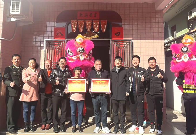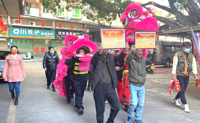 慰問(wèn)組一行熱熱鬧鬧送喜報(bào)。