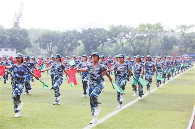 軍訓(xùn)期間,民兵教官們從隊(duì)列動(dòng)作、戰(zhàn)術(shù)動(dòng)作、衛(wèi)生與救護(hù)、內(nèi)務(wù)整理規(guī)范等多項(xiàng)內(nèi)容,對(duì)新生進(jìn)行訓(xùn)練。在中山市實(shí)驗(yàn)中學(xué),中山港街道人武部按照“先行一步、反復(fù)對(duì)接、精心籌劃”的原則先后召開推進(jìn)會(huì)、協(xié)調(diào)會(huì)、動(dòng)員部署會(huì)等,推動(dòng)學(xué)生軍訓(xùn)各項(xiàng)工作有效落實(shí);在中山二中,黃圃武裝部基干民兵提早謀劃部署,主動(dòng)挖掘資源,設(shè)置了國防教育、軍歌學(xué)唱、會(huì)操表演等活動(dòng),讓同學(xué)們?cè)隗w驗(yàn)軍旅生活中錘煉意志品質(zhì),邁好青春路上第一個(gè)“正步”。短短幾天時(shí)間,同學(xué)們就展現(xiàn)出較好的軍事素質(zhì)與精神風(fēng)貌,在軍訓(xùn)成果匯報(bào)時(shí),展示了步伐整齊的分列式、英姿颯爽的軍體拳、格斗匕首操、棍術(shù)操及旌旗獵獵的旗語操等環(huán)節(jié),一招一式盡顯軍人風(fēng)范。