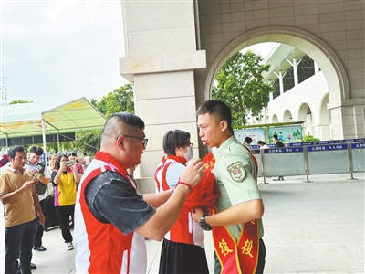 中午12點(diǎn)左右,3位退役軍人走出中山站出站口,迎接他們的不僅有鮮艷的綢緞大紅花,熱烈的歡迎儀式,還有等待已久的網(wǎng)約車愛心車隊(duì)。網(wǎng)約車愛心車隊(duì)駕駛員伏子陽為其中一名退役軍人戴上大紅花,并把他安全護(hù)送回到位于港口的家?!拔乙郧耙彩且幻艘圮娙?,今天看見他們,就像看見了當(dāng)年的自己一樣。很高興能為他們提供愛心接送服務(wù)?!狈雨柋硎?,他加入網(wǎng)約車愛心車隊(duì)曾參加過愛心送考、防疫服務(wù)等活動,這次是首次執(zhí)行愛心接送退役軍人任務(wù)。
