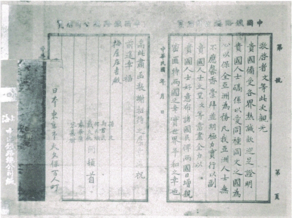 1916年,中華革命軍東北軍總司令居正向梅屋莊吉訂贈武器的訂贈單