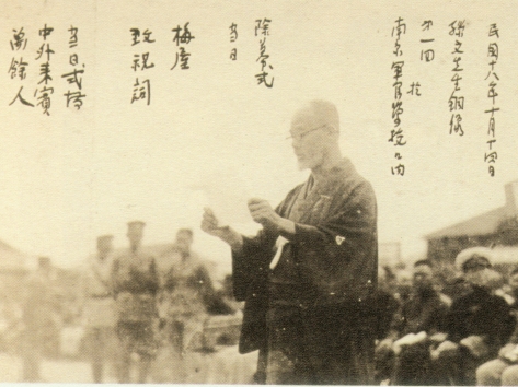 1929年10月14日,梅屋莊吉在南京軍官學(xué)校舉行的第一尊孫中山銅像揭幕典禮上致詞照片