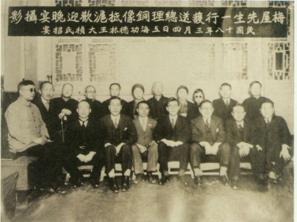 1929年3月4日梅屋等人護(hù)送銅像抵滬后在上海功德林舉行的歡迎晚宴合影