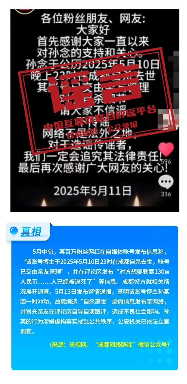 發(fā)布時(shí)間:2025-06-09 來(lái)源:中國(guó)互聯(lián)網(wǎng)聯(lián)合辟謠平臺(tái)