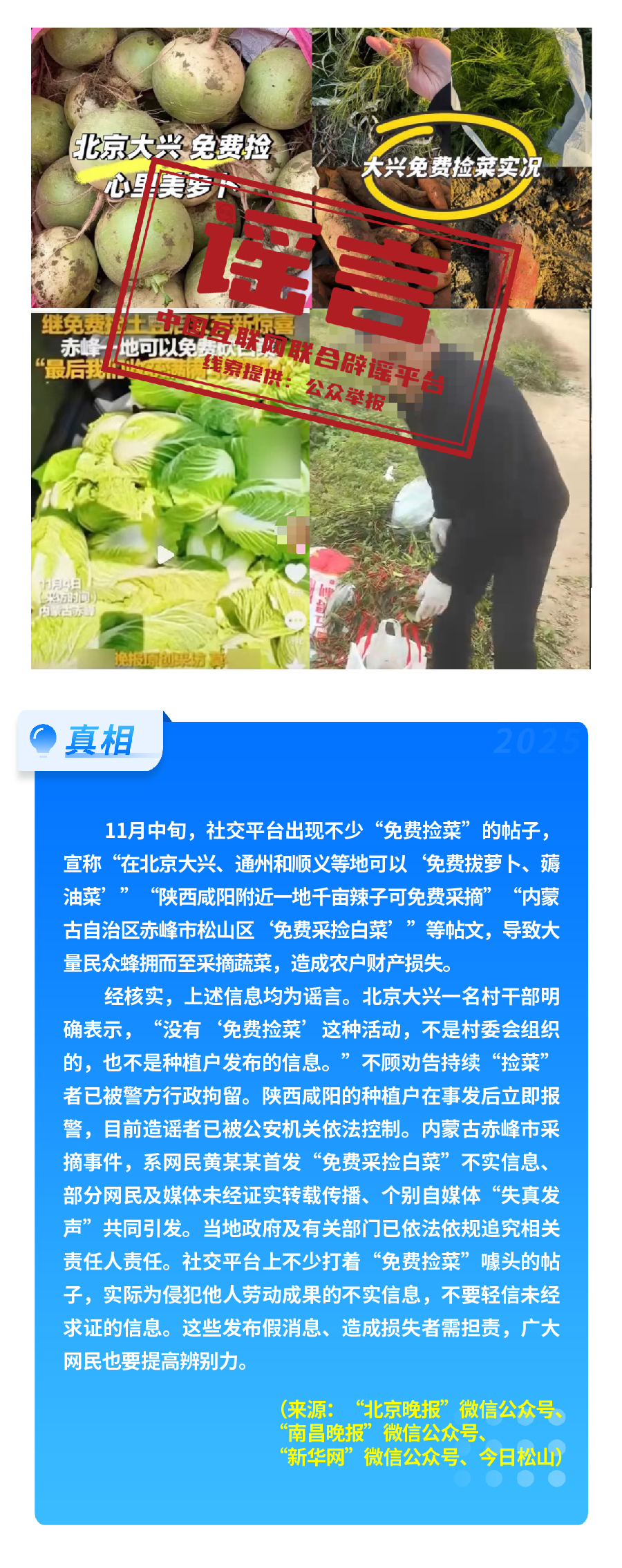 此外,“免費(fèi)撿菜”傳言在多地蔓延,北京大興、內(nèi)蒙古赤峰、陜西咸陽(yáng)等地,均有群眾因不實(shí)信息誤導(dǎo)涌入農(nóng)田哄搶,導(dǎo)致農(nóng)戶財(cái)產(chǎn)受損;“充‘劣質(zhì)電’會(huì)導(dǎo)致新能源汽車自燃”的說(shuō)法,毫無(wú)科學(xué)依據(jù),實(shí)為造謠者為博流量惡搞。另有“高見(jiàn)觀潮”“象視汽車”“987瘋狂奶爸”等賬號(hào)在多平臺(tái)編發(fā)涉汽車行業(yè)的虛假信息,惡意抹黑詆毀汽車企業(yè)、汽車產(chǎn)品,損害汽車行業(yè)發(fā)展形象。