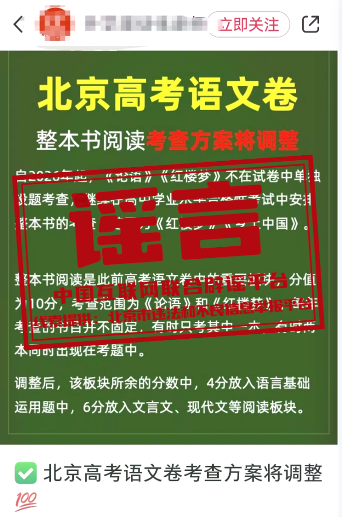 謠 言 北京高考語(yǔ)文閱讀考查方式將調(diào)整?