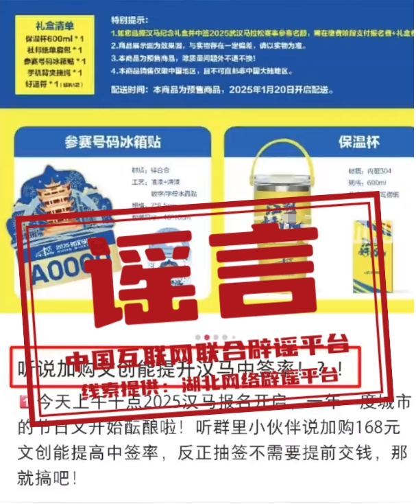 謠 言  加購武漢馬拉松文創(chuàng)禮盒可提高中簽率?