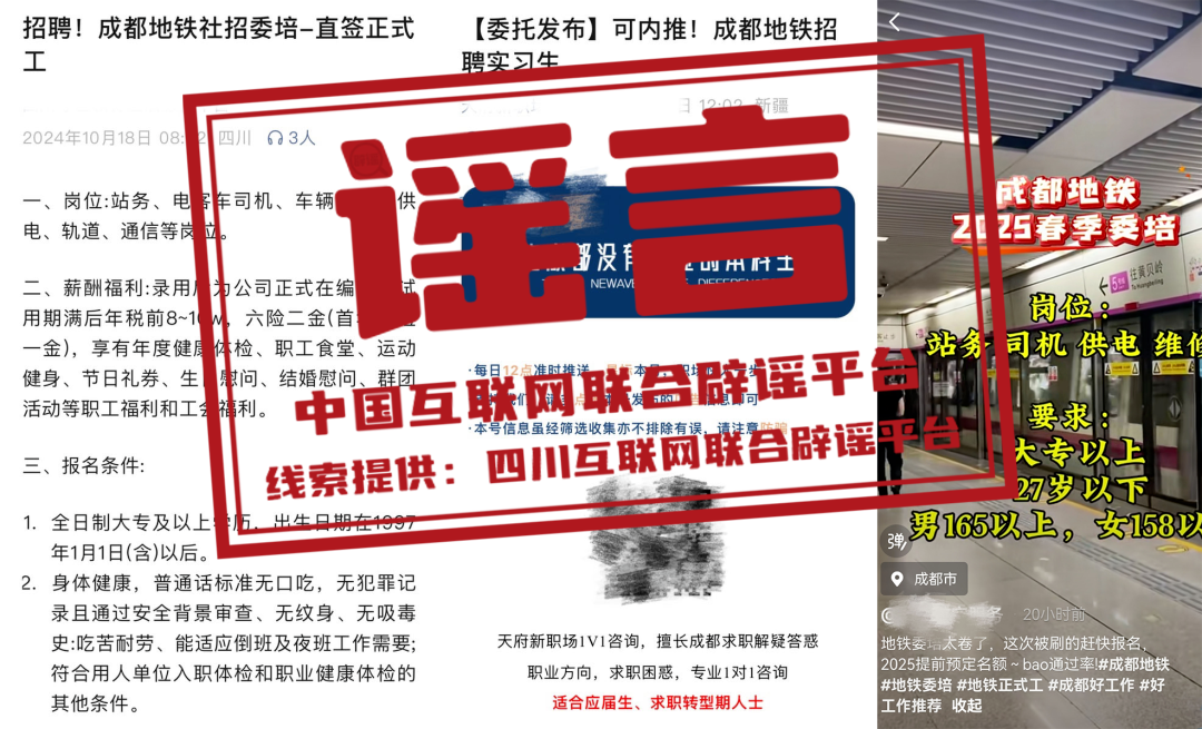 謠 言  成都地鐵招聘“提前預(yù)定名額”?濟(jì)南地鐵校園招聘有“真題”?