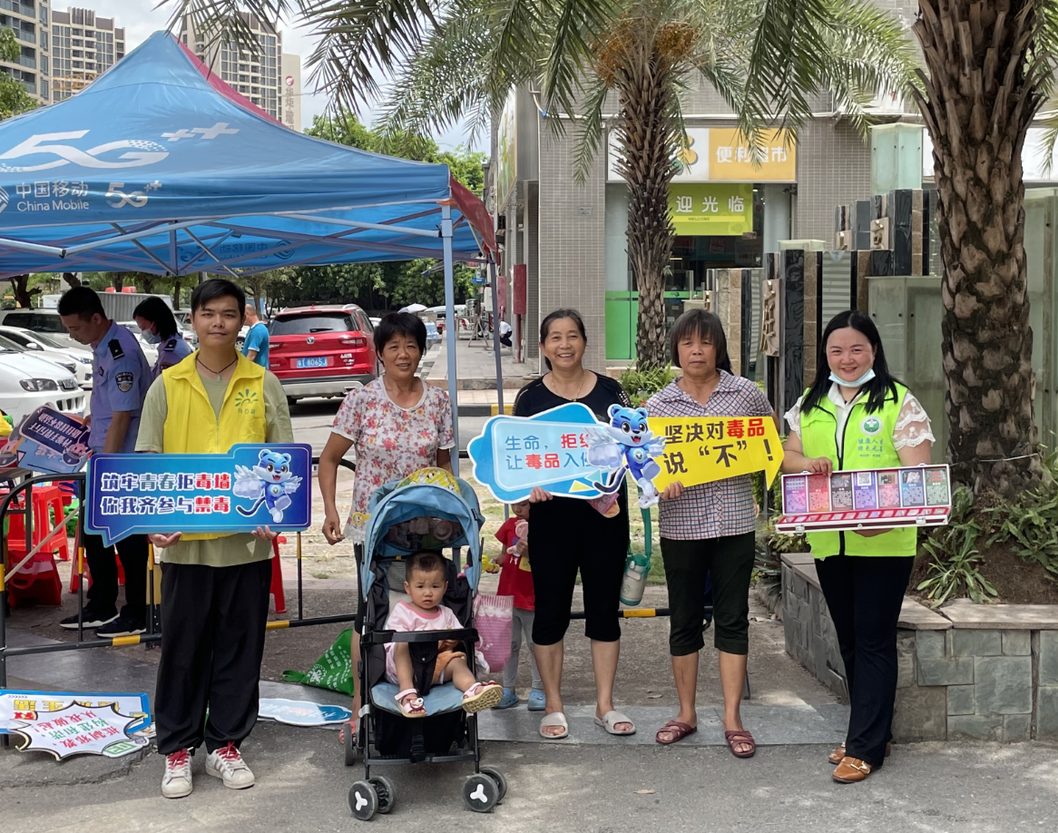為進一步提高阜沙鎮(zhèn)人民群眾抵制毒品的意識和能力,積極調(diào)動廣大群眾參與禁毒的積極性。2021年6月12日下午,阜沙鎮(zhèn)禁毒辦聯(lián)合禁毒社工深入到羅松村阜豐豪庭小區(qū)一帶開展以“健康人生,綠色無毒”為主題的禁毒宣傳活動。