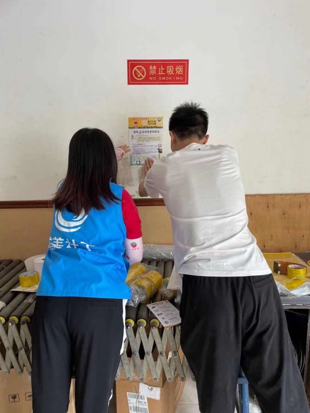 在宣傳過程中,社工派發(fā)宣傳單,并讓其張貼宣傳單,向員工普及毒品的種類、禁毒法律知識(shí),鼓勵(lì)郵政快遞企業(yè)員工在日常工作中發(fā)現(xiàn)通過寄遞從事涉毒違法犯罪行為線索后,及時(shí)向郵政管理局或公安禁毒部門舉報(bào)。
